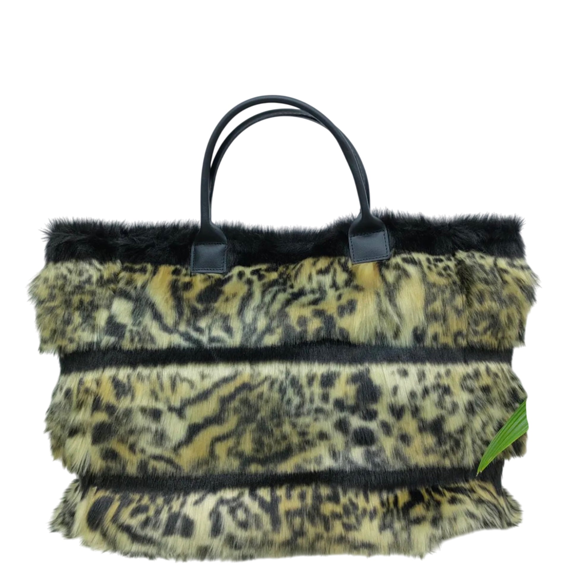 Este bolso XL está elaborado en piel sintética de alta calidad, con pelo largo Animal Print disponible en dos diseños únicos que realzan cualquier look.