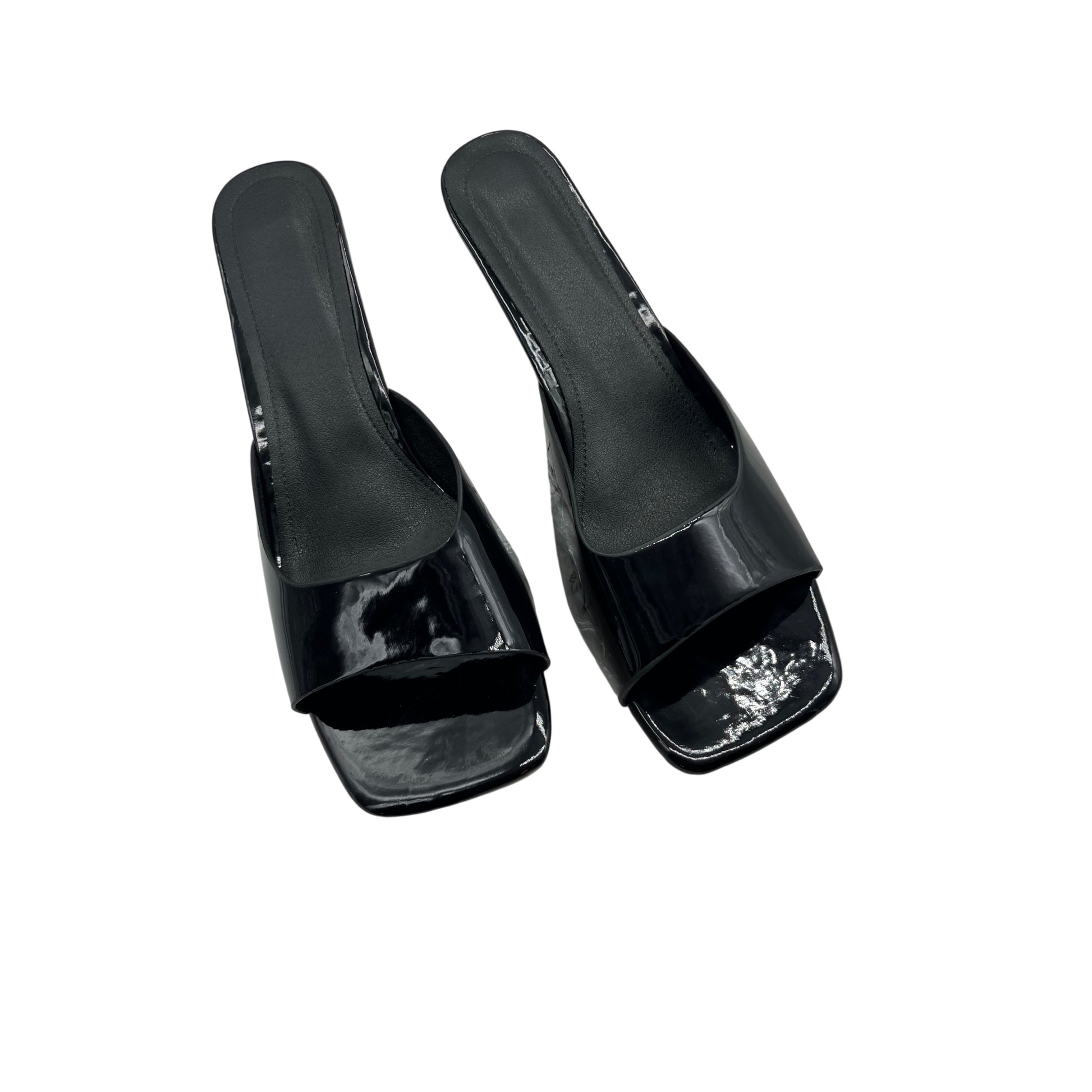 Sandalia elegante de charol brillante, con puntera abierta y redondeada que estiliza el pie y aporta un toque de sofisticación.